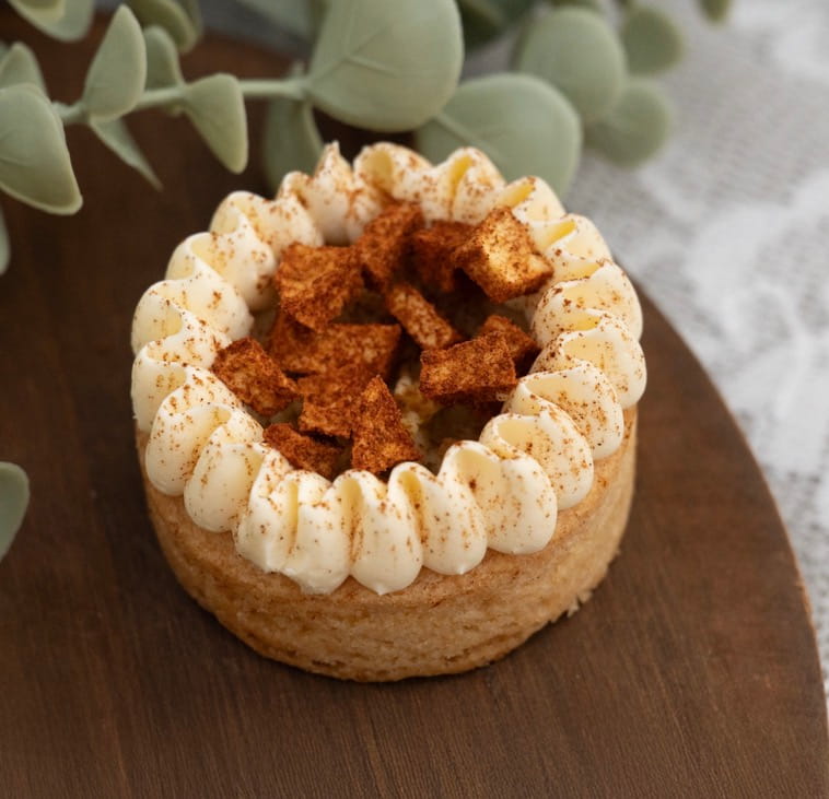 Hou je van appeltaart dan is deze petit four echt iets voor jou! Een rijke bodem gevuld met appel en opgemaakt met slagroomcreme.